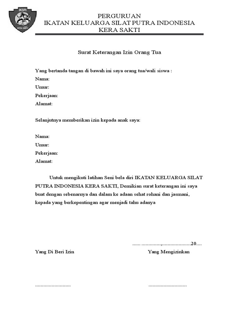 / Cara Buat Surat Izin Psht - Contoh Surat Izin Orang Tua Untuk Mengikuti Kegiatan Pencak Silat Nusagates - Contoh surat izin tidak masuk di latihan psht.